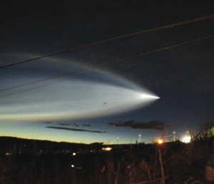 伊寧市民李峻還拍攝到了當晚的“不明飛行物”照片。李峻說,當晚他正駕車行駛清伊高速路上,他發現了一個呈圓形且帶有長長的光束尾翼的“不明飛行物”,停留在天空的時間很短。