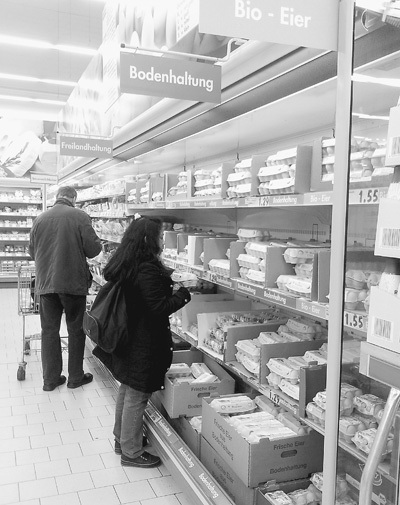 2月25日,德國(guó)柏林一家超市內(nèi),顧客在選購(gòu)雞蛋。