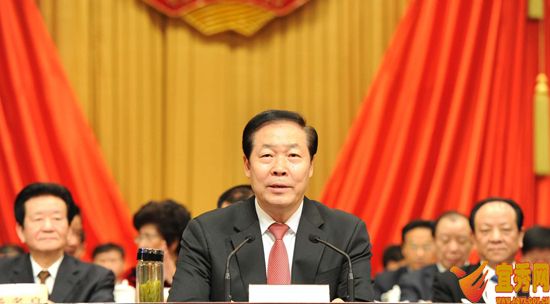 王明方在政協第十一屆安徽省委員會第一次會議上作十屆省政協常務委員會工作報告。