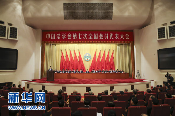 11月29日,中國法學會第七次全國會員代表大會在北京人民大會堂開幕。中共中央政治局委員、中央政法委書記孟建柱受習近平總書記委托代表黨中央發表題為《積極投身法治中國建設的偉大實踐》的祝詞。新華社記者丁林攝