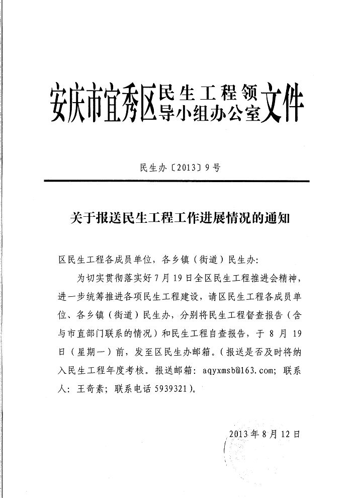關于報送民生工程工作進展情況的通知