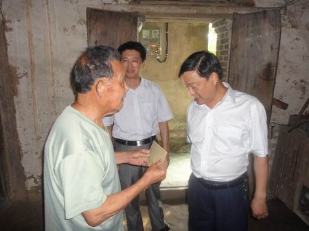 7月30日,在“八一”建軍節來臨之際,區委常委、常務副區長方國勝頂著烈日酷暑,到五橫鄉看望慰問老復員軍人。區民政局和五橫鄉負責同志陪同慰問。