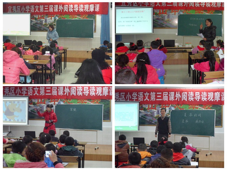 12月16日上午,宜秀區(qū)小學語文第三屆課外閱讀推進會在大龍山鎮(zhèn)丁家小學舉行,這次推進會以“不同年段的童話怎么導讀”為主題。來自大橋中心學校的朱軍妮、羅嶺鎮(zhèn)林春小學的李婷婷、楊橋中心學校的陳松、大龍山中心學校的王艷等四位老師展示了各自精彩的課堂。學生們就像過節(jié)一樣,享受了一場場精彩的視聽盛宴。老師們課堂異彩紛呈、各具特色,既激發(fā)了學生閱讀課外書的興趣,又培養(yǎng)了他們良好的閱讀習慣,還教會了他們閱讀課外書的方法,學生們收獲頗豐。然后,五橫中心學校的楊萍萍老師就課外閱讀進行了專題學習經(jīng)驗交流。