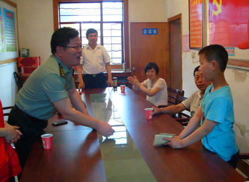 在村委會,李亞波和小家明親切交談,提前祝他六一兒童節快樂,并詳細詢問他的學習和生活情況,勉勵他好好學習,用優異的成績回報爺爺和組織上的關心。(蘇曠 張軍旺)