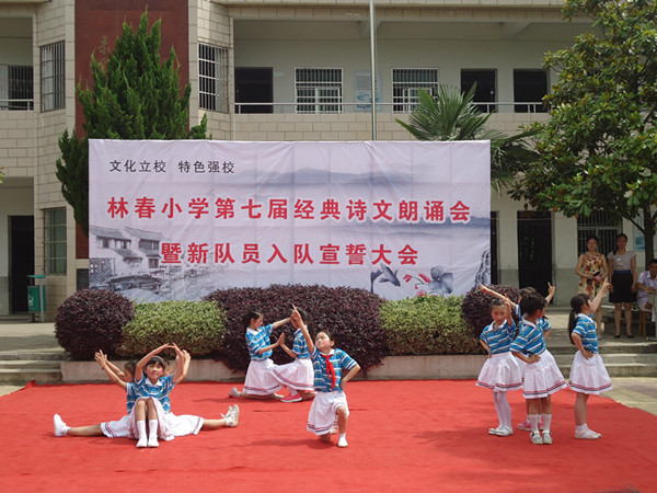 活動(dòng)在羅嶺中心學(xué)校校長(zhǎng)金和常的開幕詞中拉開序幕,他希望該校的全體師生,堅(jiān)定不移地走個(gè)性化、特色化和文化立校的內(nèi)涵式發(fā)展之路,并通過誦讀活動(dòng)的開展使學(xué)校的辦學(xué)品位不斷提升,品牌效應(yīng)不斷顯現(xiàn)。之后,民政局領(lǐng)導(dǎo)向林春小學(xué)捐贈(zèng)了5000元的慰問金,此舉是踐行黨的群眾路線活動(dòng)的具體行動(dòng),深深地感動(dòng)了學(xué)校的每位師生。接著,徐永生書記對(duì)關(guān)心支持教育的各級(jí)領(lǐng)導(dǎo) 及社會(huì)各界人士表示衷心的感謝,并鄭重宣布本次活動(dòng)開幕。之后,匯演活動(dòng)正式開始,師生們同臺(tái)演出,他們把對(duì)詩(shī)詞的熱愛、理解、追求,或誦、或演、或唱、或舞地表達(dá)出來。精彩紛呈的節(jié)目,博得了領(lǐng)導(dǎo)嘉賓們的陣陣喝彩,會(huì)場(chǎng)上不斷地響起了雷鳴般的掌聲。最后,領(lǐng)導(dǎo)們與演出代表合影留念。