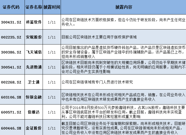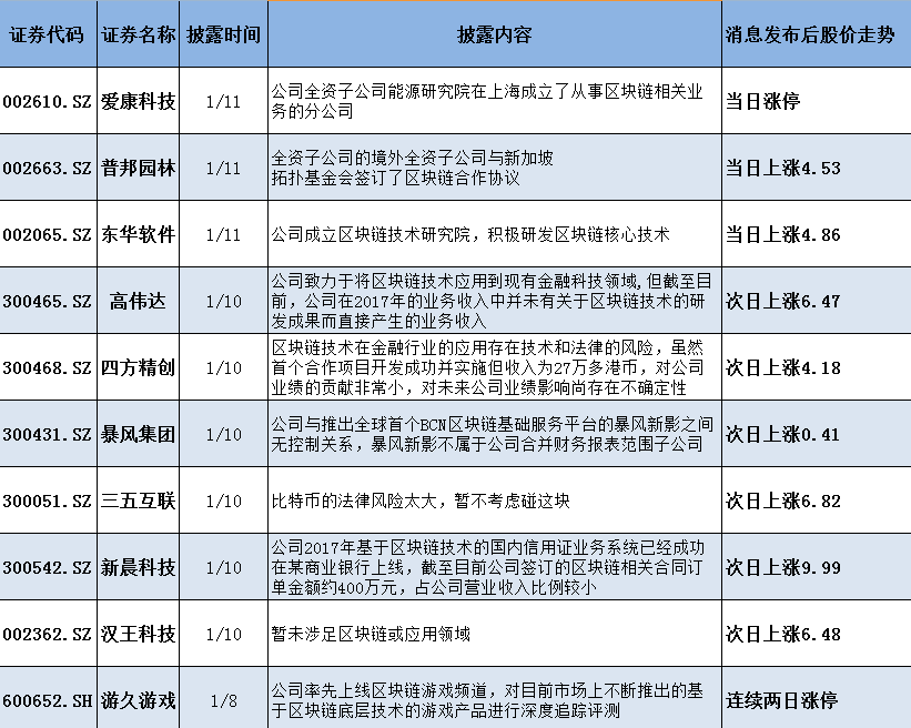 另一類已在區(qū)塊鏈板塊中的概念股集體站出來澄清涉及區(qū)塊鏈方面的傳聞及信息,其中包括多只漲停的區(qū)塊鏈概念股。
