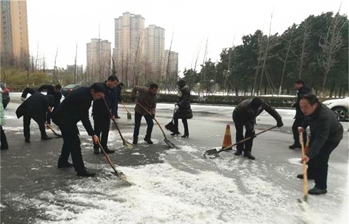 活動現場,大家不畏嚴寒,冒著刺骨的寒風和飛舞的雪花,紛紛拿著鐵鍬和掃帚,推的推、鏟的鏟、掃的掃,分工明確,配合默契,任憑雪花落在身上、頭上,任憑積雪沾濕腳面,干得熱火朝天。經過1個多小時的努力,路面積雪被清理完畢,道路也已打掃干凈,為過往車輛及行人安全出行提供了有力保障。