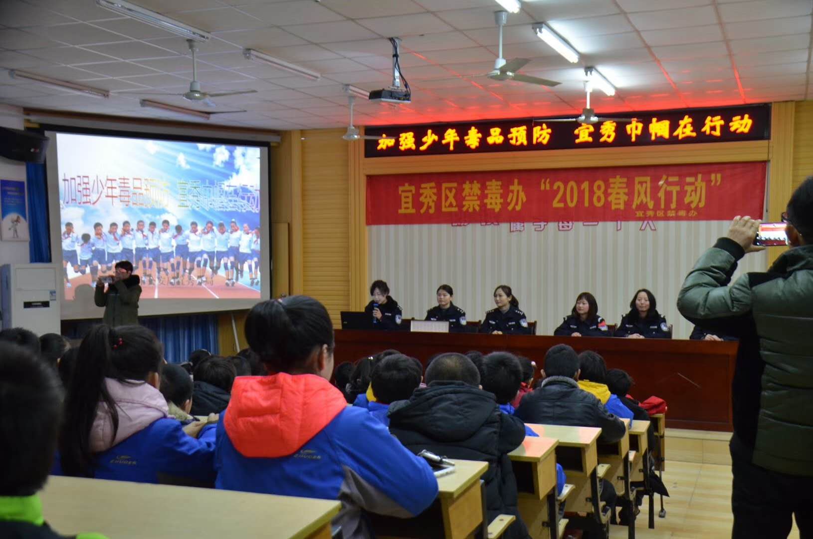 為進一步提高少年識毒、防毒、拒毒的意識和能力,在三八婦女節來臨之際,宜秀分局女民警、輔警來到轄區芭茅小學,與學校一起開展了一場生動的“加強少年毒品預防,宜秀巾幗在行動”的活動。