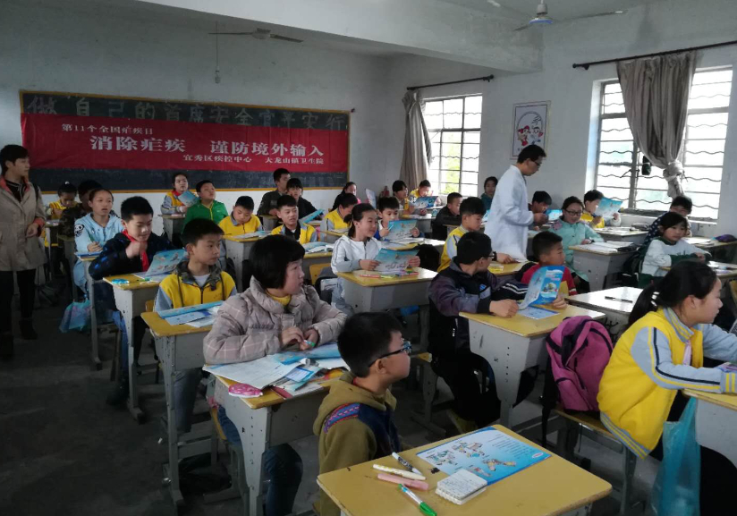 4月23日,區(qū)疾控中心、大龍山鎮(zhèn)衛(wèi)生院與教育部門協(xié)作,在大龍山鎮(zhèn)中心學(xué)校以播放瘧疾宣傳片和發(fā)放瘧疾防治宣傳資料等形式向廣大師生宣傳瘧疾防治知識,動員師生們共同關(guān)注和支持消除瘧疾工作。