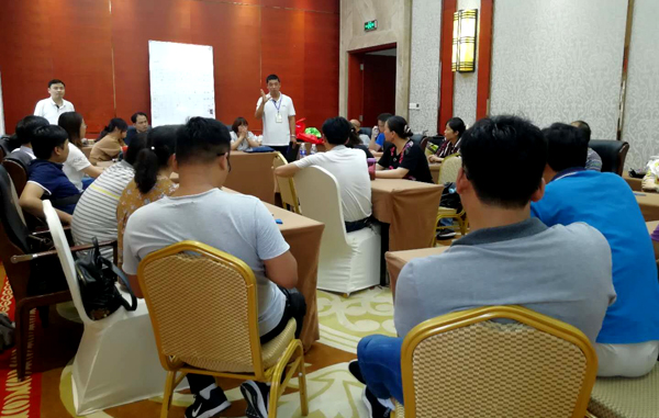 在“頭腦風暴”活動環節,兩個小組再次進行了一次PK賽。大家明確分工,強化協作,不斷激發思維動力,群策群力共同完成既定任務。整個活動現場,歡呼聲、吶喊聲不絕于耳,參訓學員似乎都忘記了自己的身份、年齡和性別,心理也得到了徹底的放松。