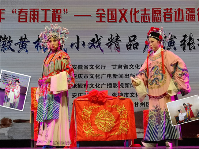 此次活動(dòng)分為兩場(chǎng),7月4日,黃梅戲藝術(shù)講堂及黃梅戲藝術(shù)展演活動(dòng)還走進(jìn)甘州區(qū)大成學(xué)校,上午進(jìn)行的是黃梅戲文化藝術(shù)講座,下午進(jìn)行的是黃梅戲?qū)?chǎng)演出。 7月5日,由甘州區(qū)文化館協(xié)辦的2018年“春雨工程”全國(guó)文化志愿者邊疆行黃梅戲小戲精品展演張掖行走進(jìn)甘州第二場(chǎng)演出在張掖市三館演會(huì)中心舉行。