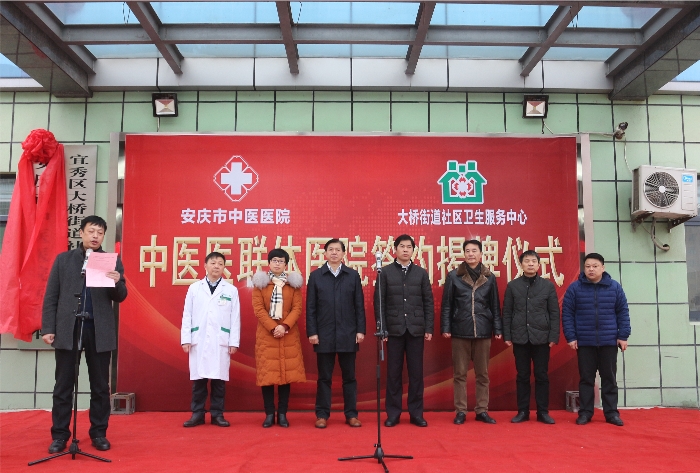 為貫徹落實國家醫改精神,優化中醫醫療資源配置,提升基層醫療機構中醫藥服務能力,1月20日,宜秀區衛計委與安慶市中醫醫院簽訂醫療聯合體戰略合作協議,并舉行市中醫醫院醫聯體大橋街道社區衛生服務中心中醫館揭牌儀式。市衛計委主任儲艷云、區長鄭志、市中醫藥管理局局長姚東發、市中醫醫院院長郭川明、副區長王靜出席簽約揭牌儀式。