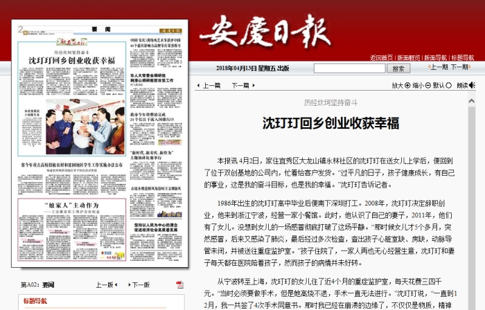4月2日,家住宜秀區大龍山鎮永林社區的沈玎玎在送女兒上學后,便回到了位于雙創基地的公司內,忙著給客戶發貨。“過平凡的日子,孩子健康成長,有自己的事業,這是我的奮斗目標,也是我的幸福。”沈玎玎告訴記者。