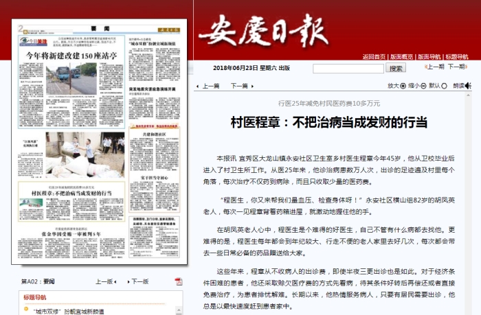 [安慶日?qǐng)?bào)] 村醫(yī)程章:不把治病當(dāng)成發(fā)財(cái)?shù)男挟?dāng)