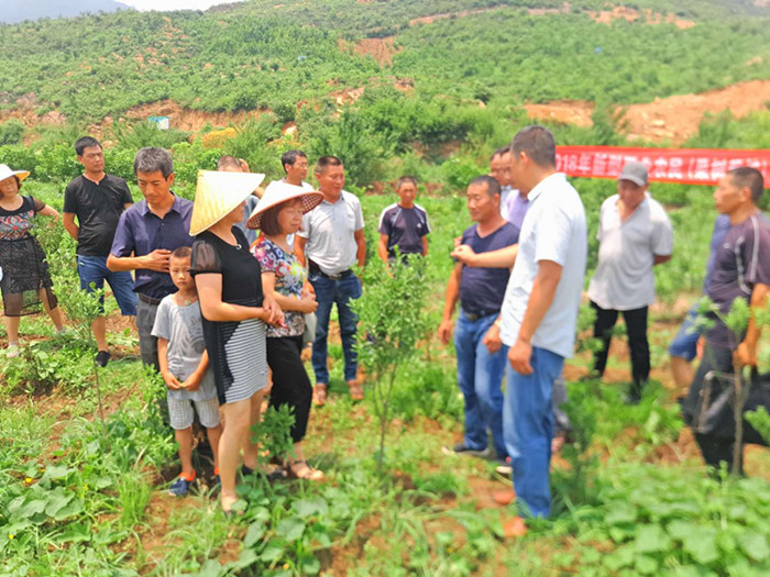 7月4日,在宜秀區(qū)羅嶺鎮(zhèn),市果樹農(nóng)藝專家正在向當(dāng)?shù)氐墓麡渖a(chǎn)大戶們講解果樹土壤管理、病蟲害防治知識。