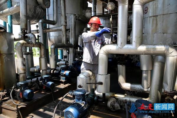 8月7日,安徽國孚潤(rùn)滑油工業(yè)有限公司的工人正在取油抽檢。