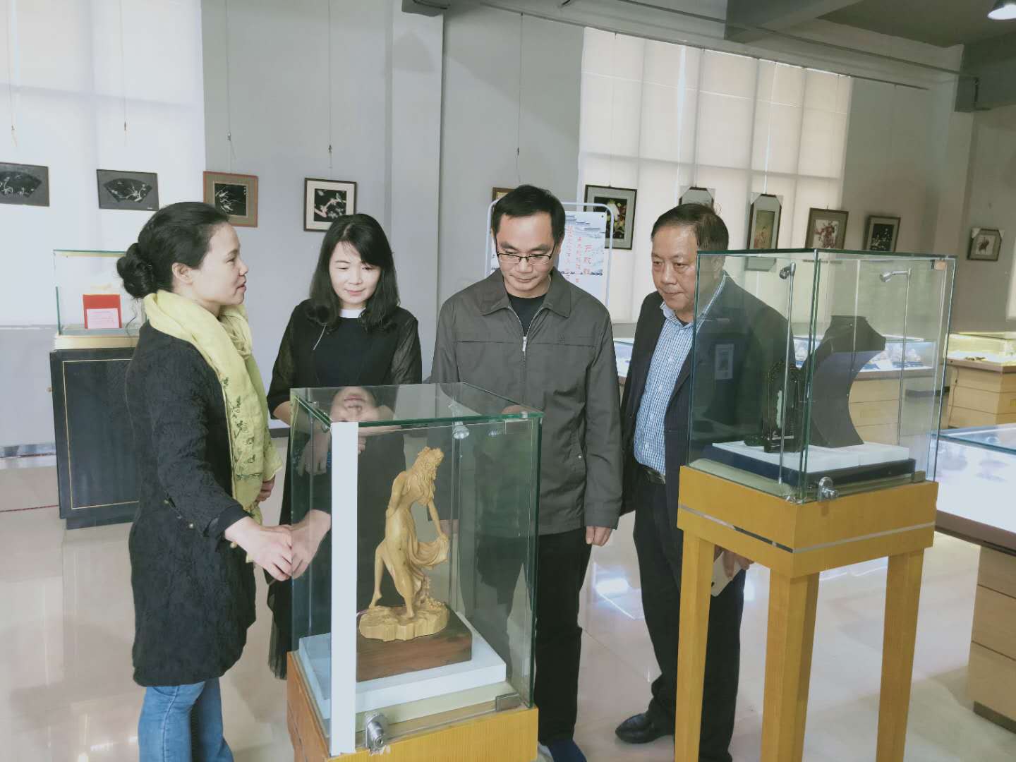 本次展覽還得到了中國民間文藝家協(xié)會非遺傳承人產(chǎn)業(yè)基地兼藝術(shù)品交流專業(yè)委員會副主任嚴敬群的大力支持,不僅專程來現(xiàn)場參觀指導,還將自己多年珍藏藏品交館展出。