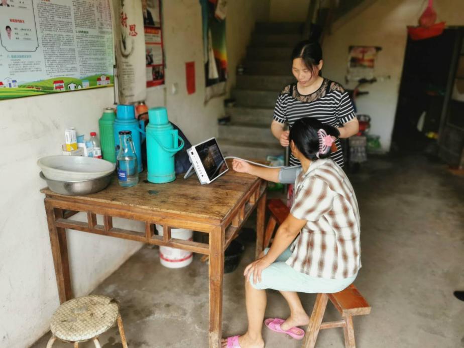 石塘社區村醫王貴杰本著不怕苦不怕累的精神,冒著酷暑對社區內患高血壓、殘疾等貧困群體進行走訪慰問,為他們量血壓、測體溫等并送上防暑降溫藥品。董學全是石塘社區2014年建檔立卡貧困戶,2016年順利脫貧,七十多歲的她患有高血壓和腦梗住院,行動不便,王醫生每月定期上門為她測量血壓、測量體溫等,同時每年定期送她去鄉衛生院體檢。“要按時吃藥,高溫天氣注意勞逸結合,做好防暑降溫措施,有什么不舒服的,立刻給我打電話。”王醫生這樣叮囑她,在炎炎夏日送去一縷涼風。
