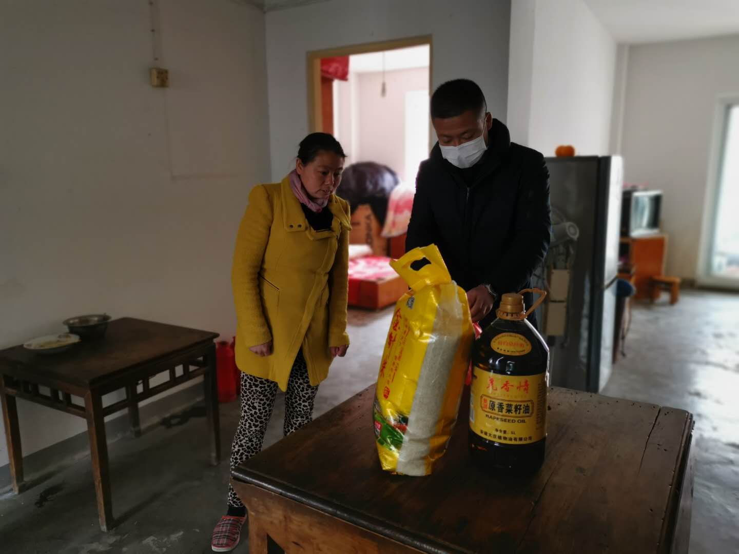 3月3日,在大橋街道吳祥社區建檔立卡貧困戶趙全娣家中,趙全娣老人看著送來的防疫消毒用品及米油等生活物資后,開心的說:“黨的政策好啊,幫扶單位也負責,在這個時期還一直考慮我們的生活,謝謝,謝謝。”