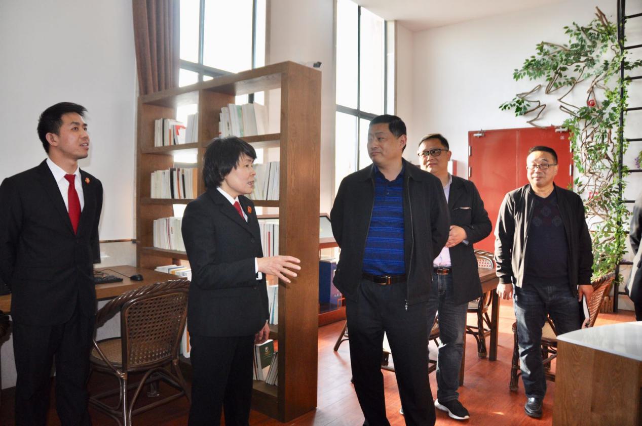 王宜宏一行參觀了該院職工書屋和羽毛球館等地,認真聽取了該院工會建設及“職工書屋”建設情況匯報,隨后同“職工書屋”管理員及部分干警進行了簡短座談,詳細了解了軟硬件設施,藏書體量、制度和管理情況,對宜秀法院“職工書屋”建設取得的優異成績給予了充分肯定,并結合工作實際和切身體會,分享讀書心得與工會建設工作感悟,對后續該院“職工書屋”升級完善提出了寶貴意見。
