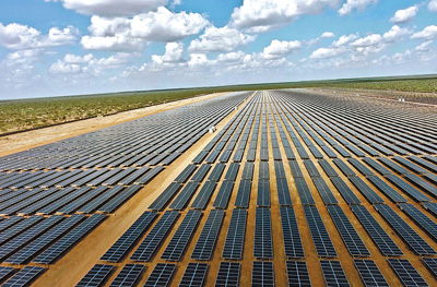在肯尼亞東北省,蜿蜒的塔納河畔,一塊巨大的“藍(lán)板”鑲嵌在金黃的熱帶稀樹草原上。這塊“藍(lán)板”由超過20萬塊光伏板安裝構(gòu)成,占地85公頃,是肯尼亞乃至東非地區(qū)規(guī)模最大的光伏發(fā)電站項目——加里薩50兆瓦太陽能發(fā)電站(見上圖,資料圖片)。該電站大大降低了當(dāng)?shù)厍鍧嵞茉磧r格。肯尼亞電力部門以每度12先令(約合0.12美元)價格購電入網(wǎng),比當(dāng)?shù)刂安裼桶l(fā)電還要便宜8先令。