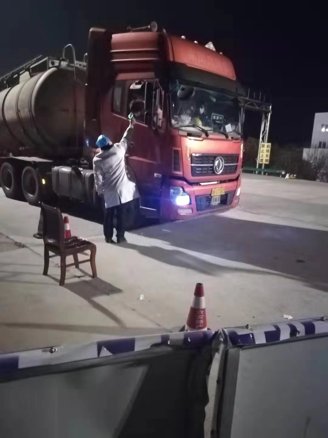 1月28日,在高速安慶口收費站,現場交警對來宜秀區的車輛、尤其是外籍車輛進行攔停。同時,要求車主及車上乘坐人員下車,配合宜秀區楊橋鎮衛生院的工作人員做好外來人員的體溫測量工作。