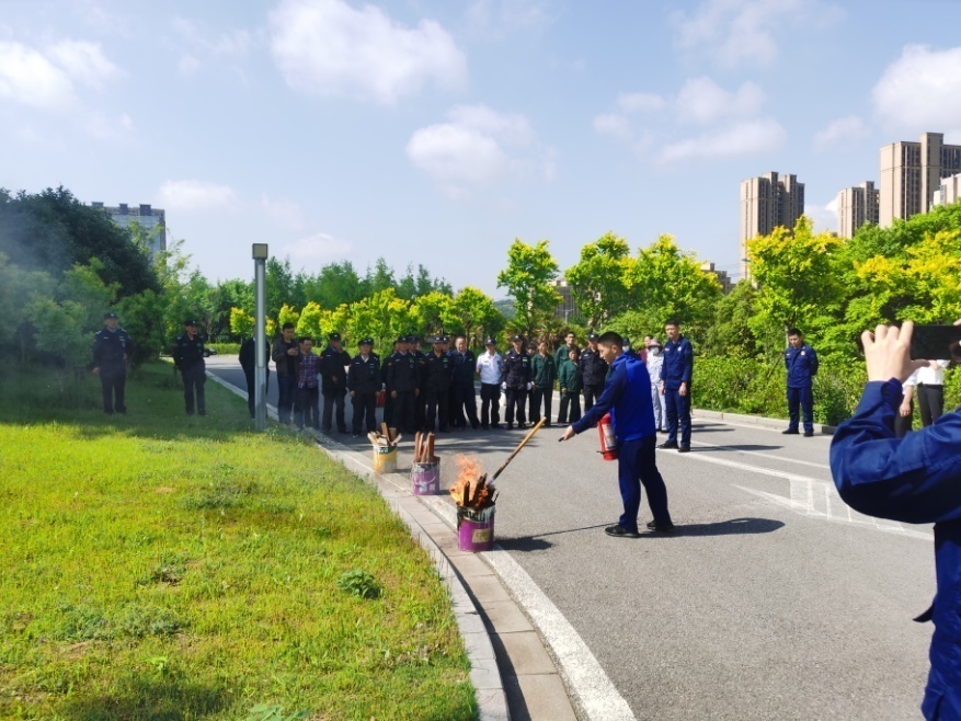 本次演練模擬了在區黨建館配電房發現火情的場景。巡視人員在發現火情時,立即使用對講機向監控室報告,值班人員接到火情通報迅速致電火警119,并立即安排滅火行動小組攜帶滅火器奔赴現場滅火,同時組織工作人員緊急撤離現場。整個演習過程井然有序,從人員進入現場計時到滅火、人員疏散,僅用五分鐘;演習結束后,區消防大隊為物業及工作人員現場培訓,講解防火注意事項,初期火災怎樣撲救及發生火災時如何逃生、自救等安全知識,并現場演示了滅火器的使用方法,組織工作人員現場體驗滅火器的使用。