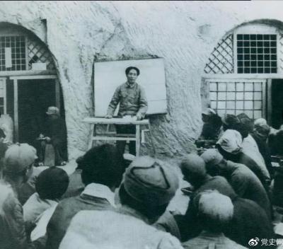 1938年4月,毛澤東在魯迅藝術學院講演。