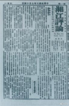 7月14日 《湘江評(píng)論》創(chuàng)刊。毛澤東在《湘江評(píng)論》創(chuàng)刊宣言中指出:“世界什么問(wèn)題最大?吃飯問(wèn)題最大。什么力量最強(qiáng)?民眾聯(lián)合的力量最強(qiáng)。”《湘江評(píng)論》創(chuàng)刊號(hào)寄到北京后,李大釗給予了高度評(píng)價(jià)。《晨報(bào)》也予以介紹,說(shuō)它“內(nèi)容完備”“魄力非常充足”。