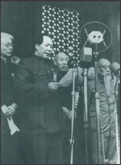 開國大典。1949年10月1日,毛澤東在天安門城樓上莊嚴宣告:中華人民共和國中央人民政府今天成立了!