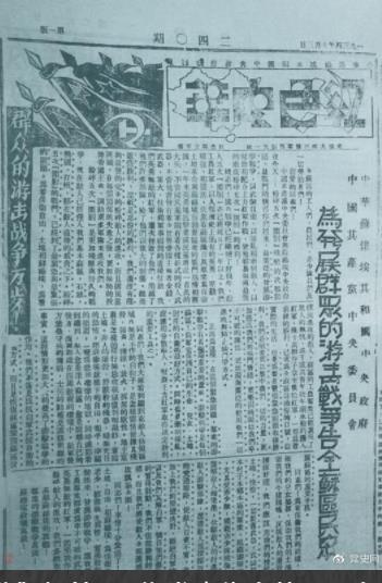 1934年10月,《紅色中華》報(bào)第240期發(fā)表告全蘇區(qū)民眾書(shū),號(hào)召發(fā)展群眾游擊戰(zhàn)爭(zhēng),保衛(wèi)蘇維埃政權(quán)。