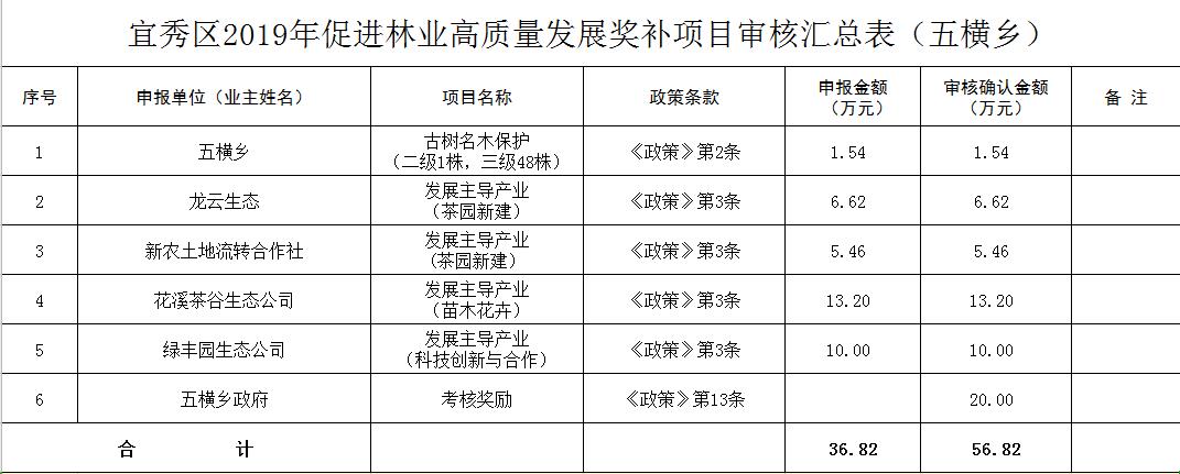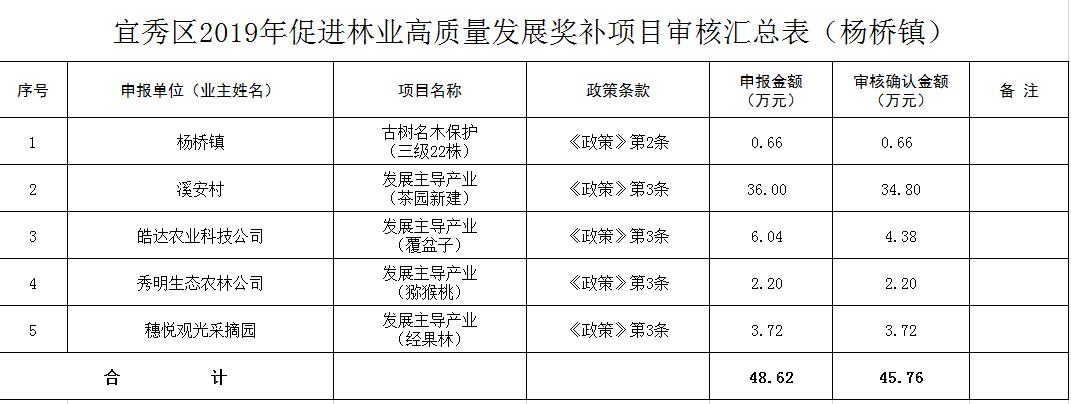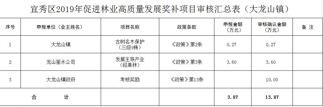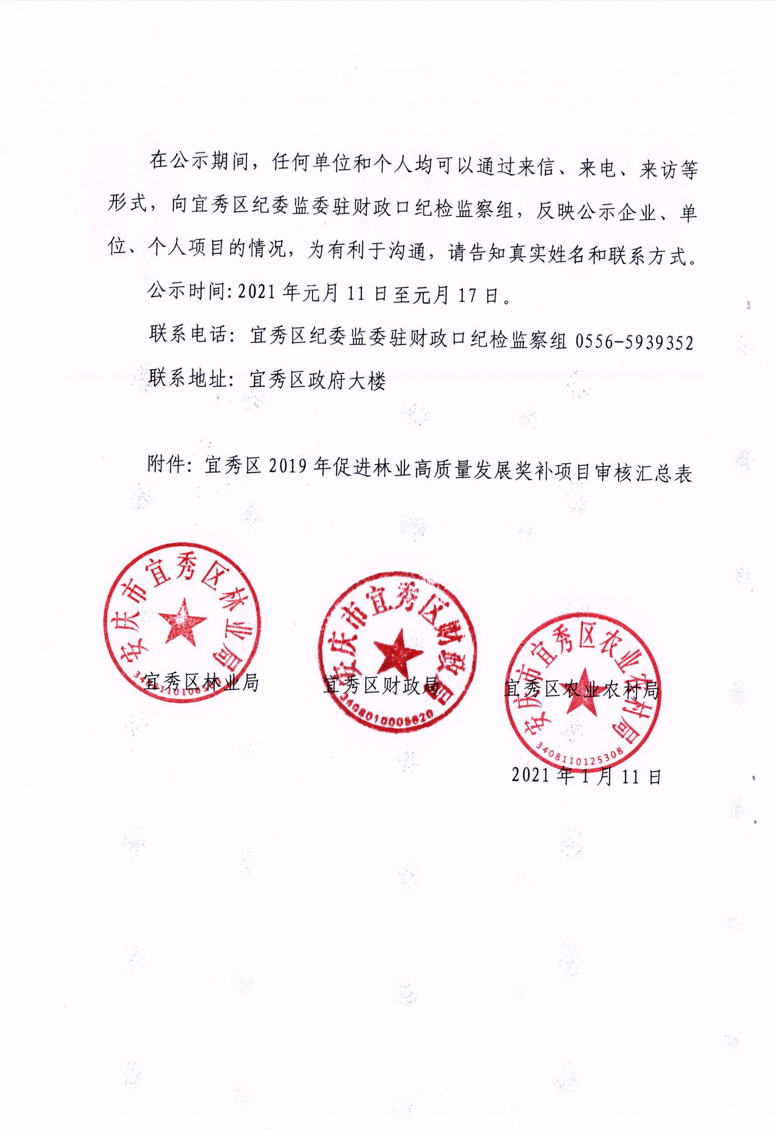 關于《宜秀區推深做實林長制改革促進林業經濟高質量發展若干政策(暫行)》2019年度獎補項目擬支持資金公示