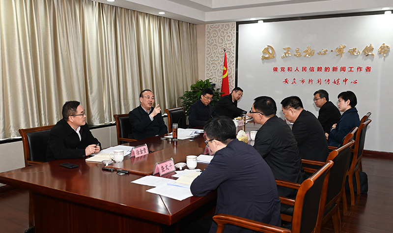 調研中,張祥安主持召開座談會,詳細聽取意識形態、網絡安全和媒體融合改革工作情況的匯報。張祥安指出,我們黨歷來高度重視宣傳思想工作。新聞媒體是黨和人民的喉舌,是意識形態主陣地,擔負著反映輿論、引導輿論的重要任務。安慶宣傳工作基礎良好,媒體融合改革初有成效,要堅定信心決心,沿著既定部署和目標克難前行,努力實現新突破、展現新作為。