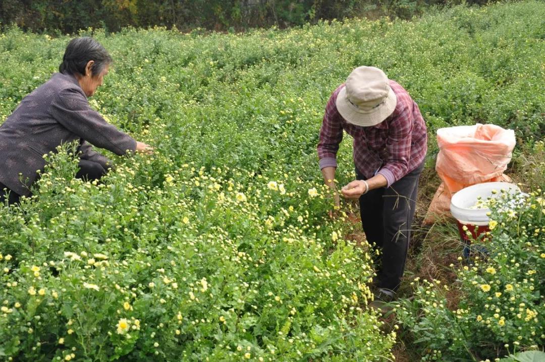 “現在地里的莊稼都收割完了,我邀請了幾個好姐妹到田里來采摘菊花,我們每天能掙80多元呢!”嚴永香一邊嫻熟地采摘著鮮菊一邊笑著說著。她家是黃梅村的脫貧戶,提起這些金燦燦的菊花,她滿是喜悅。近幾年,黃梅村立足本地優勢,大力發展特色產業種植,為幫助農戶致富增收,村里優先選擇脫貧戶前來采摘,還幫助脫貧戶自己承包田畝種植菊花,有效地提高了她們的收入。