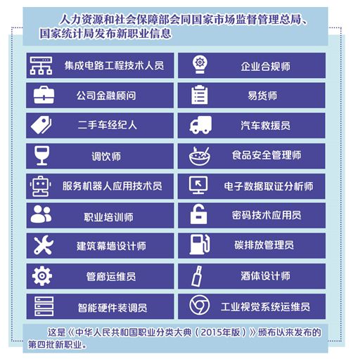 “新職業的發布,對于增強從業人員的社會認同度、促進就業創業、引領職業教育培訓改革、推動產業發展等,都具有重要意義。”人社部有關負責人表示,新職業發布后,人社部將會同相關部門和單位加快新職業的職業標準開發,指導人才培養培訓,提升從業人員的素質和能力,打造數量充足、素質優良的從業人員隊伍。(韓秉志)