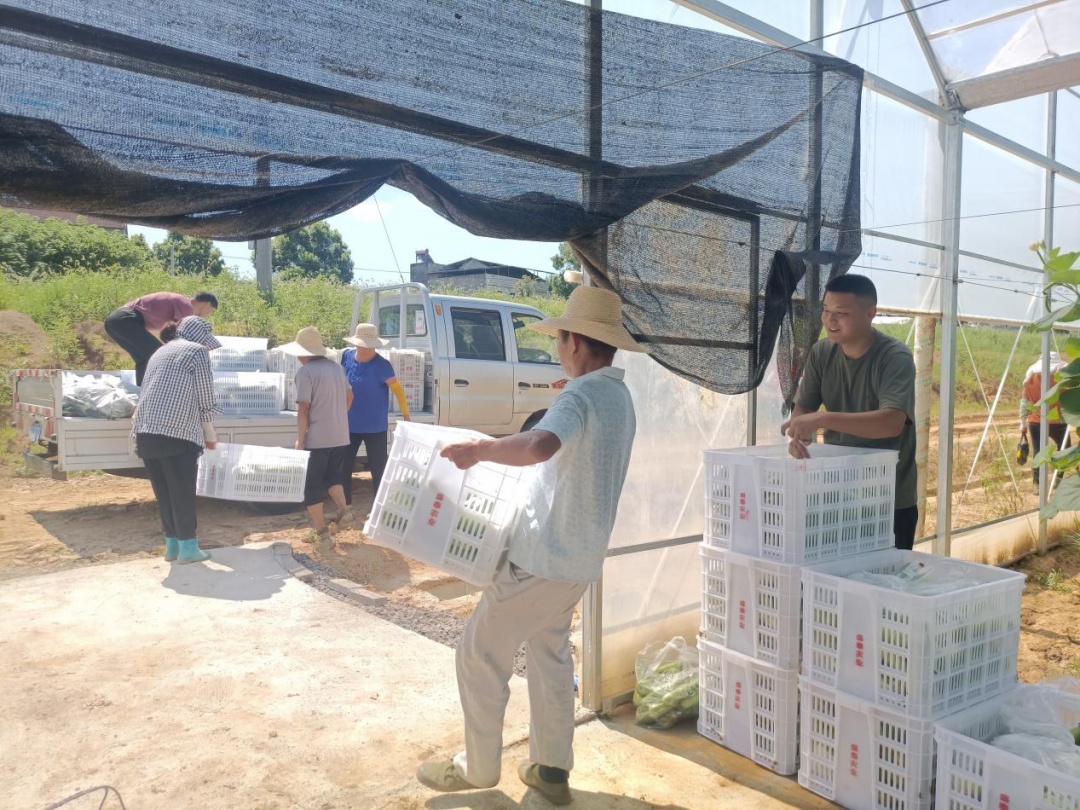 此時的大棚內(nèi)是熱鬧的、忙碌的、更是喜悅的,經(jīng)過一個月的精心呵護,蔬菜成熟,農(nóng)戶們正在忙著采摘。管理員嚴永德像是呵護自家孩子般把采摘的每根黃瓜、瓠子,仔細整理、裝箱、稱重、裝車,接著一輛輛裝滿“豐收果實”的車輛駛出視野,駛往各地的蔬菜大市場。