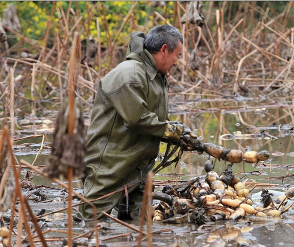 “春種一粒粟,秋收萬顆子。”初夏賞荷,盛夏采蓮,入秋吃藕。金秋時節的龍山社區螺螄島,映入眼簾的是一片豐收繁忙的景象。幾位專業挖藕人身穿防水服,在齊腰深的水中,手持高壓水槍在水下不停的掃射,不一會水面就飄滿白花花的田藕。