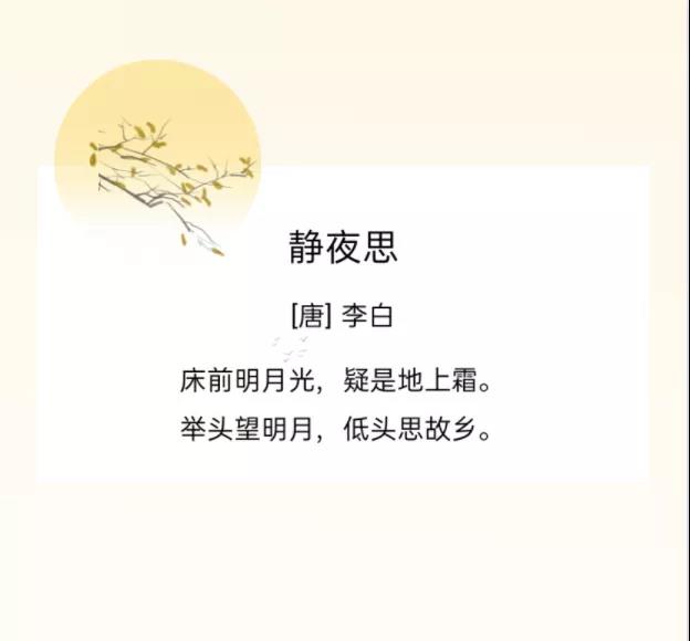 當然,與月亮相關聯的詩中,李白的《靜夜思》更為出名,達到人盡皆知的地步。這首詩把思鄉情與月聯系在一起,成了每個遠離家鄉之人的共同情感。