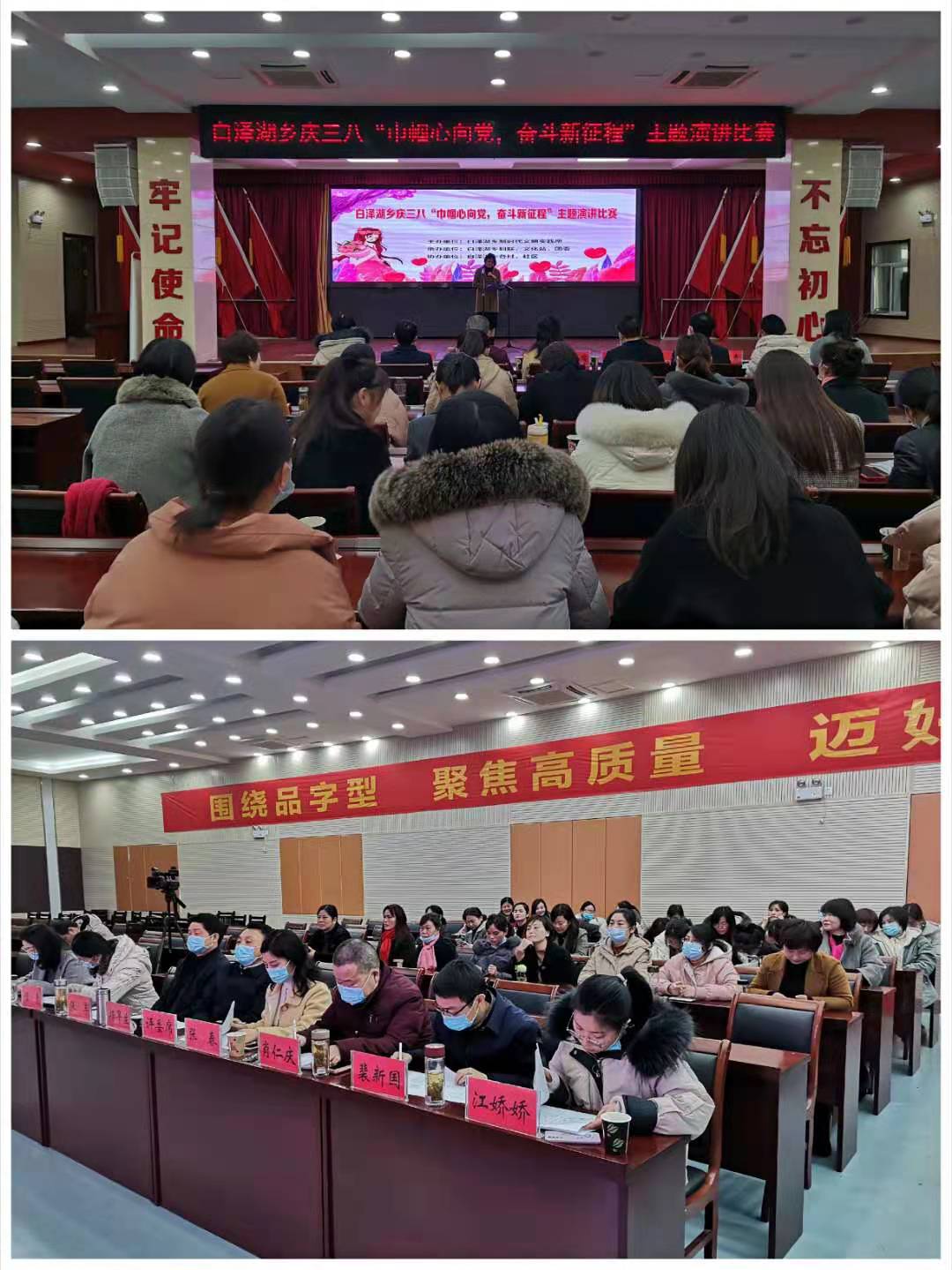 在率先開展的“巾幗心向黨,奮斗新征程”主題演講比賽活動中,鄉機關部門、各村(社區)、白澤湖鄉中心學校通過預賽推出的11名選手進行了角逐,選手們以“學黨史”“頌黨恩”“辦實事”為主要內容,通過愛與責任、基層服務、最美女性、學習先進等多維度進行精彩的演說,充分展示了白澤湖鄉女職工履職盡責當先鋒、立足崗位爭優秀的精神風貌,展現出愛崗敬業的深厚情懷。經過激烈的角逐和評委們認真的評選,最終由鄉機關干部宣程同志獲得一等獎。活動最后,鄉長程震代表鄉政府向女性干部職工們致以節日的問候并發表了熱情洋溢、溫暖人心的致辭,他指出,2020年,白澤湖鄉取得了一系列優異成績,這些成績的取得和廣大女同胞的辛勤付出和不懈奮斗是分不開的。2021年希望女同胞們能再接再厲、再創佳績,以更加優異的成績慶祝中國共產黨成立100周年。區婦聯主席張春、鄉科干、全鄉女性干部職工共計60余人參加此次活動。