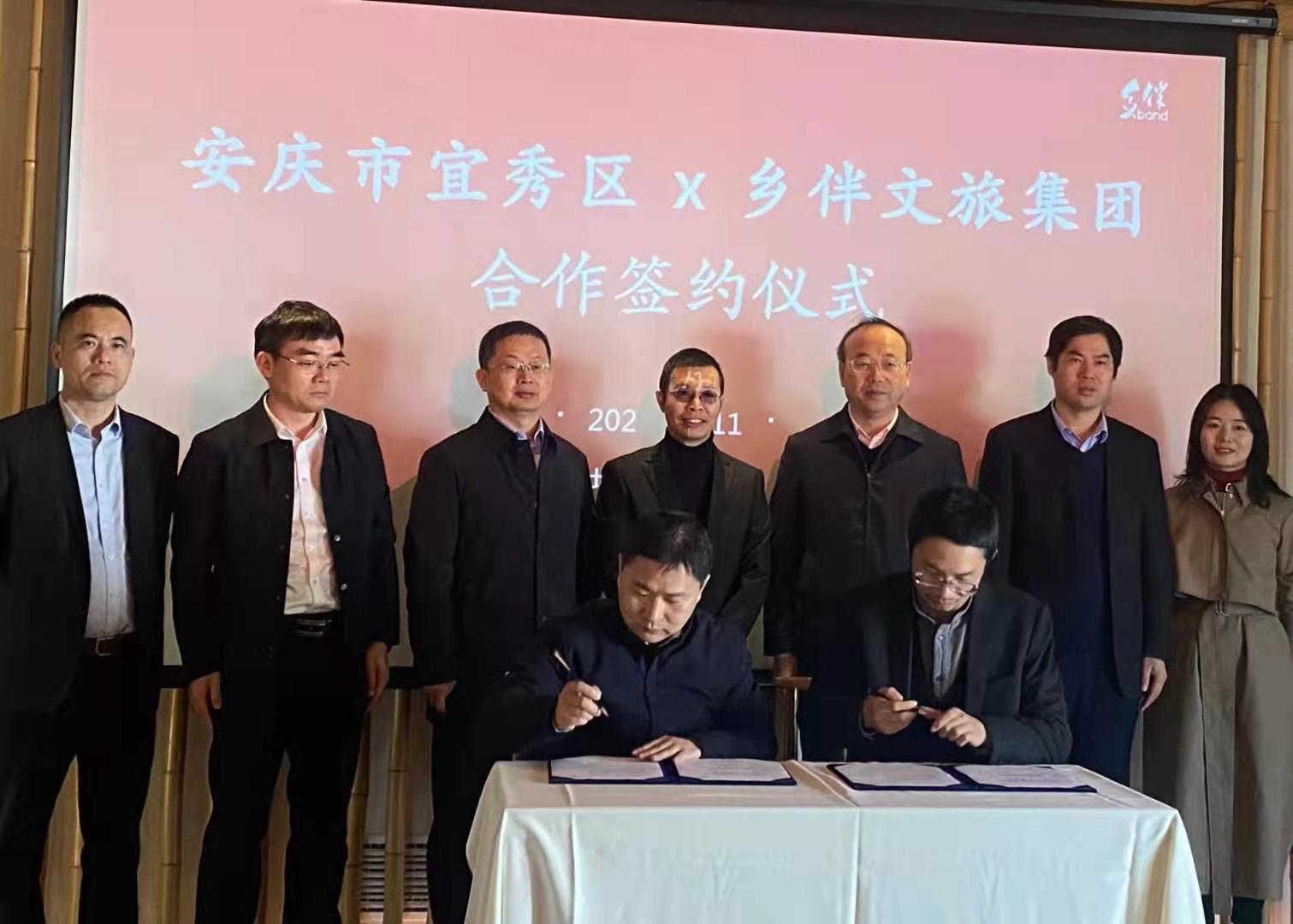 11月11日上午,宜秀區(qū)與鄉(xiāng)伴文旅集團(tuán)簽訂戰(zhàn)略合作協(xié)議,市委書記張祥安出席并見證簽約儀式。市委常委、副市長呂棟,區(qū)委書記鄭志、市招商中心主任曹紫權(quán)、市政府駐滬辦主任謝政、區(qū)政府副區(qū)長張泓等參加。