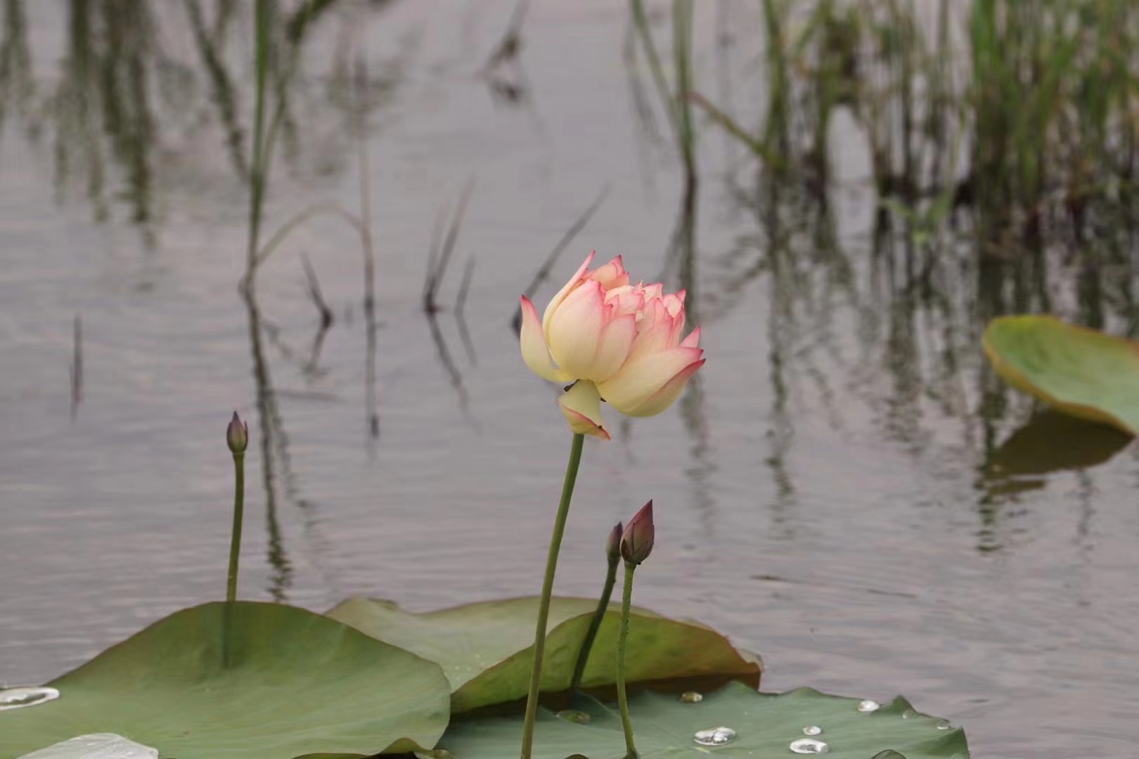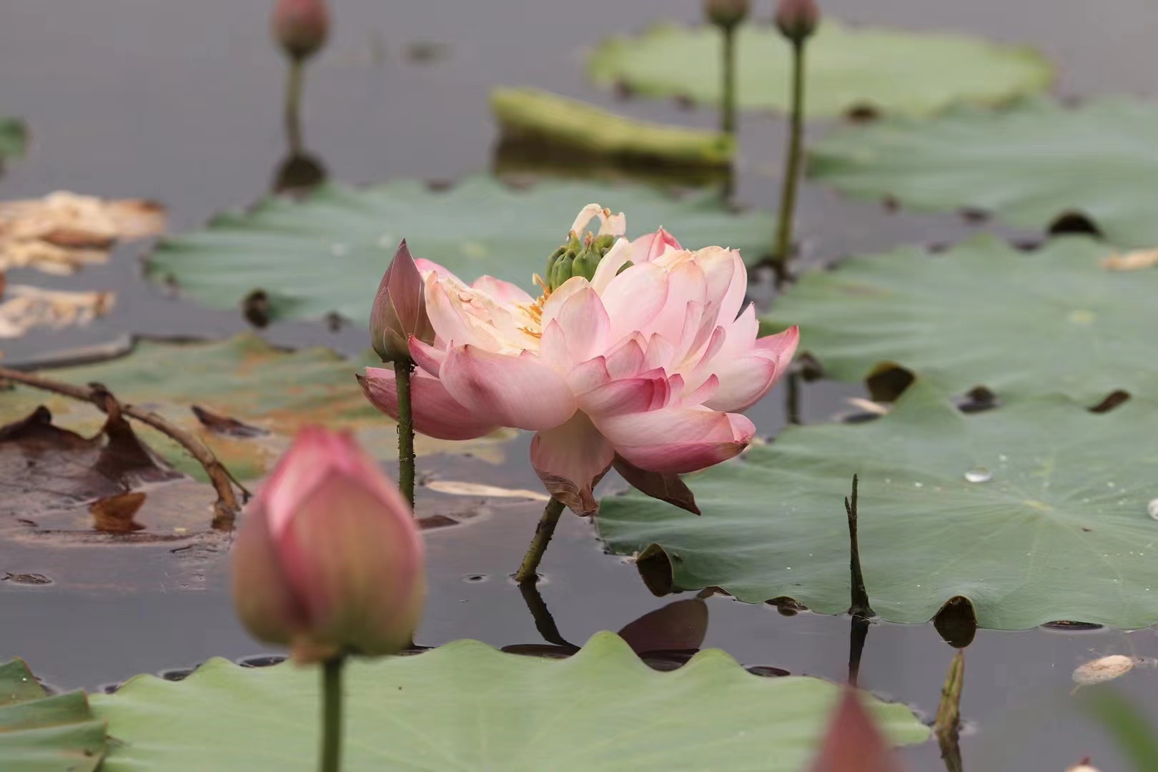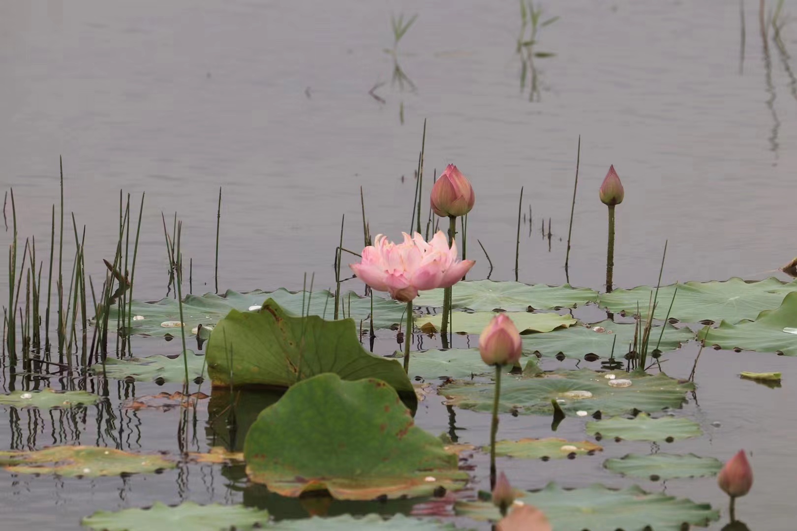 在安慶市宜秀區菜子湖國家濕地公園,朵朵荷花向陽而立,碧綠的荷葉,暈染著湖水,訴說著夏日的美妙物語。放眼望去,有的花苞初綻,柔情似水;有的含苞待放,好似嬌羞的少女;還有的花瓣全開,露出金黃色花蕊和嫩黃色蓮蓬,裊娜萬分,美不勝收。(攝影:陳春麗)