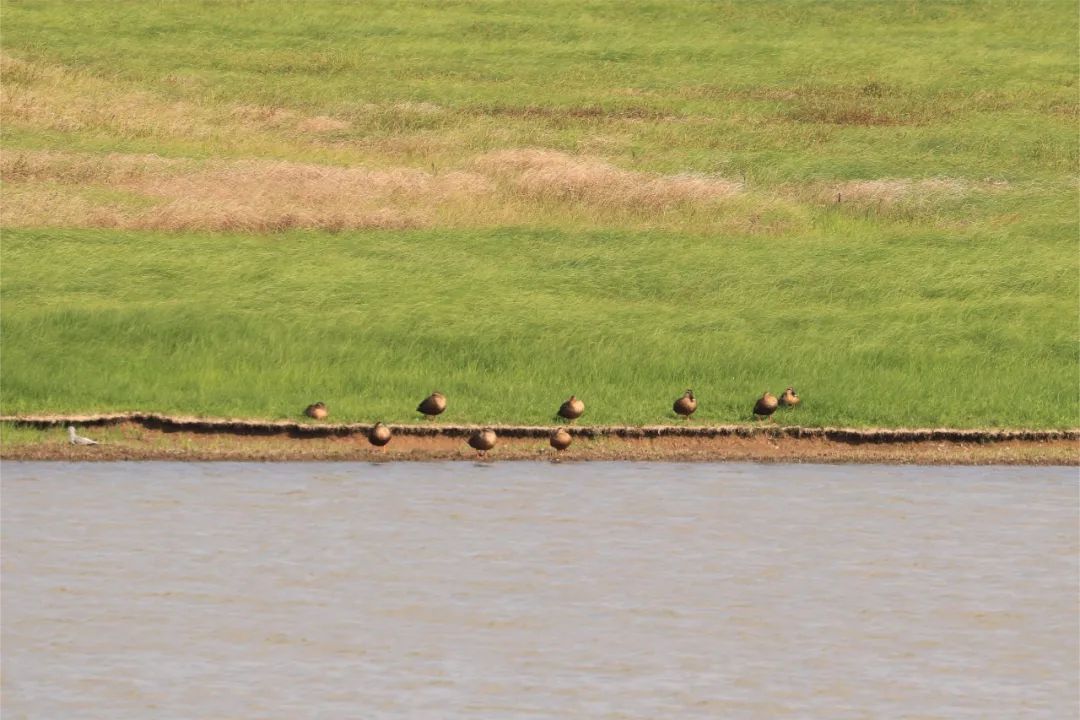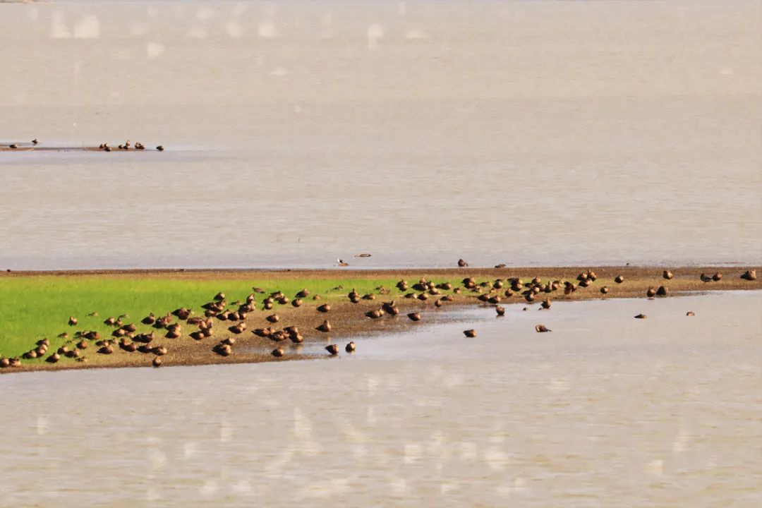 九月,午后的菜子湖國家濕地公園生態保育區灘涂上,數千只綠頭鴨、斑嘴鴨等悠閑曬著太陽,駐足打盹,構成一幅幅鳥與自然和諧相處的美麗畫卷,“鳥棲淺灘”的生態自然景觀正在形成。(攝影:陳春麗)