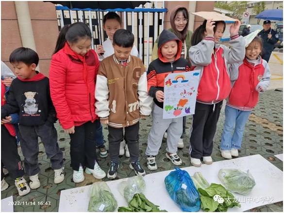 大龍山鎮(zhèn)中心小學快樂小菜農(nóng)上線啦!11月14日是大龍山鎮(zhèn)中心小學第一次蔬菜市場愛心義賣節(jié),雖然天氣寒冷,還飄灑著小雨點,可是小小菜農(nóng)們有模有樣,你吆喝,我打包、他算賬,蔬菜愛心義賣熱火朝天,一包包愛心蔬菜暖人心田。