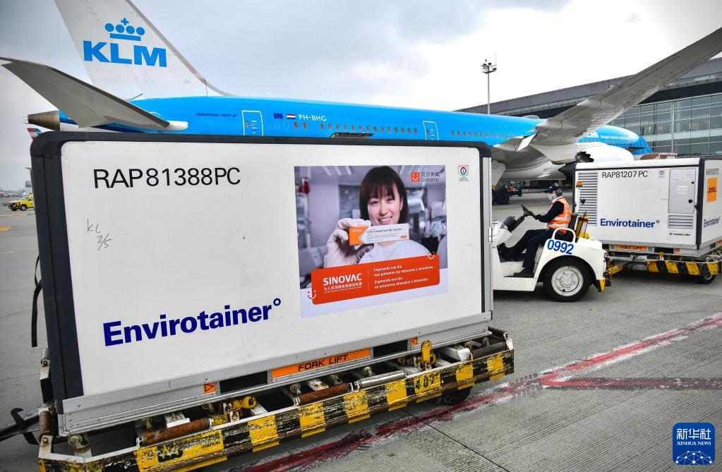 這是2021年3月6日在哥倫比亞波哥大埃爾多拉多國際機場拍攝的剛剛完成卸貨的科興疫苗。新華社發(fā)(哥倫比亞總統(tǒng)府供圖)