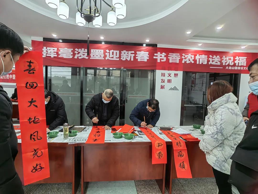 “千門萬戶曈曈日,總把新桃換舊符。”在新春佳節來臨之際,為豐富廣大社區群眾的文化生活,營造歡樂喜慶、和諧溫馨的節日氣氛。1月25日上午,大龍山鎮綜合文化站聯合鎮新時代文明實踐所、團委、婦聯開展“我們的中國夢”——文化進萬家之“揮毫潑墨迎新春,書香濃情送祝福”文明實踐活動。來自大龍山鎮的10余名書法家齊聚在宜秀區新時代文明實踐中心,現場為群眾免費書寫春聯,將濃濃的新春祝福用春聯的傳統形式送到大家的手中。