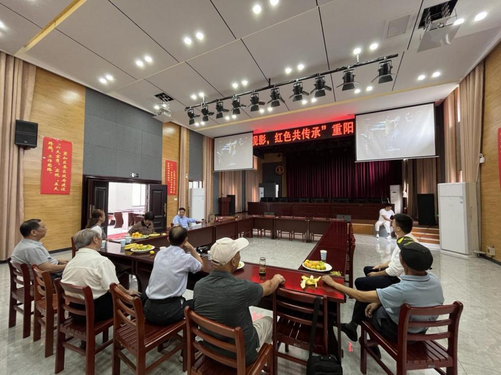 在楊橋會展中心,老干部們在觀看歷史題材影片具有很強的教育意義,很受教育。觀影結束后,鎮黨委副書記張長春、組織委員雷輝與老干部們親切座談交流。