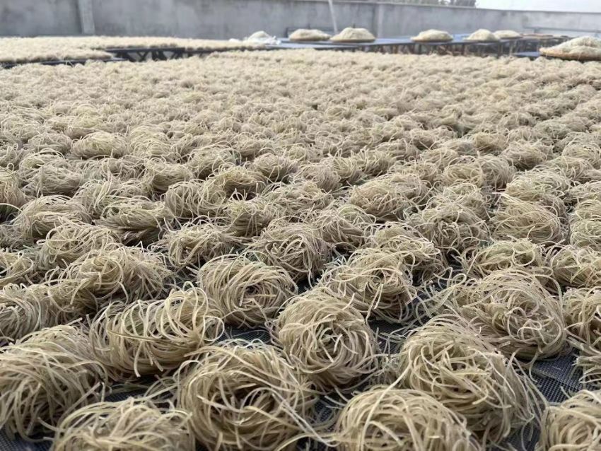 當下,正是農村做紅薯粉絲的好時節。選優質紅薯粉、蒸熟、刨制、晾曬……近日,在虎山村的金虎山粉絲廠里,幾名身穿工作服的工人十分忙碌,一上午功夫,使得紅薯粉絲卷布滿了晾曬架。60歲的楊寶忠是粉絲廠的老員工了,因整戶都是聾啞人,收入低,2014年他家被納入建檔立卡貧困戶。自從村辦紅薯粉絲加工廠后,他就被村里聘用為粉絲加工師傅,蒸做一屜粉絲就是70元,他一天能做3屜,穩定的收入讓家里順利實現脫貧。 和楊寶忠一樣,在紅薯基地和金虎山粉絲廠里就業的貧困勞動力有十余人。虎山村的農民群眾祖祖輩輩都生產制作紅薯粉絲,早已遠近聞名。但是,家庭式生產只夠滿足自己食用,加上虎山村土地沙性最適合種植紅薯,產出的紅薯生吃甘甜,出粉率極高,制作出的紅薯粉絲勁道爽滑,讓許多人對這里的紅薯粉絲只聞其名卻很難品嘗得到。2021年,為發展壯大紅薯產業,提高粉絲產能,虎山村積極謀劃申報標準化生產車間改造項目,2020年元月將投入使用。將進一步加大金虎山粉絲廠的生產規模,另外虎山村積極鼓勵農戶大面積種植紅薯,采用“公司+基地+農戶”的模式,既可以解決脫貧戶和村上其他農戶的紅薯銷售和就業問題,又可以確保農戶增收。
