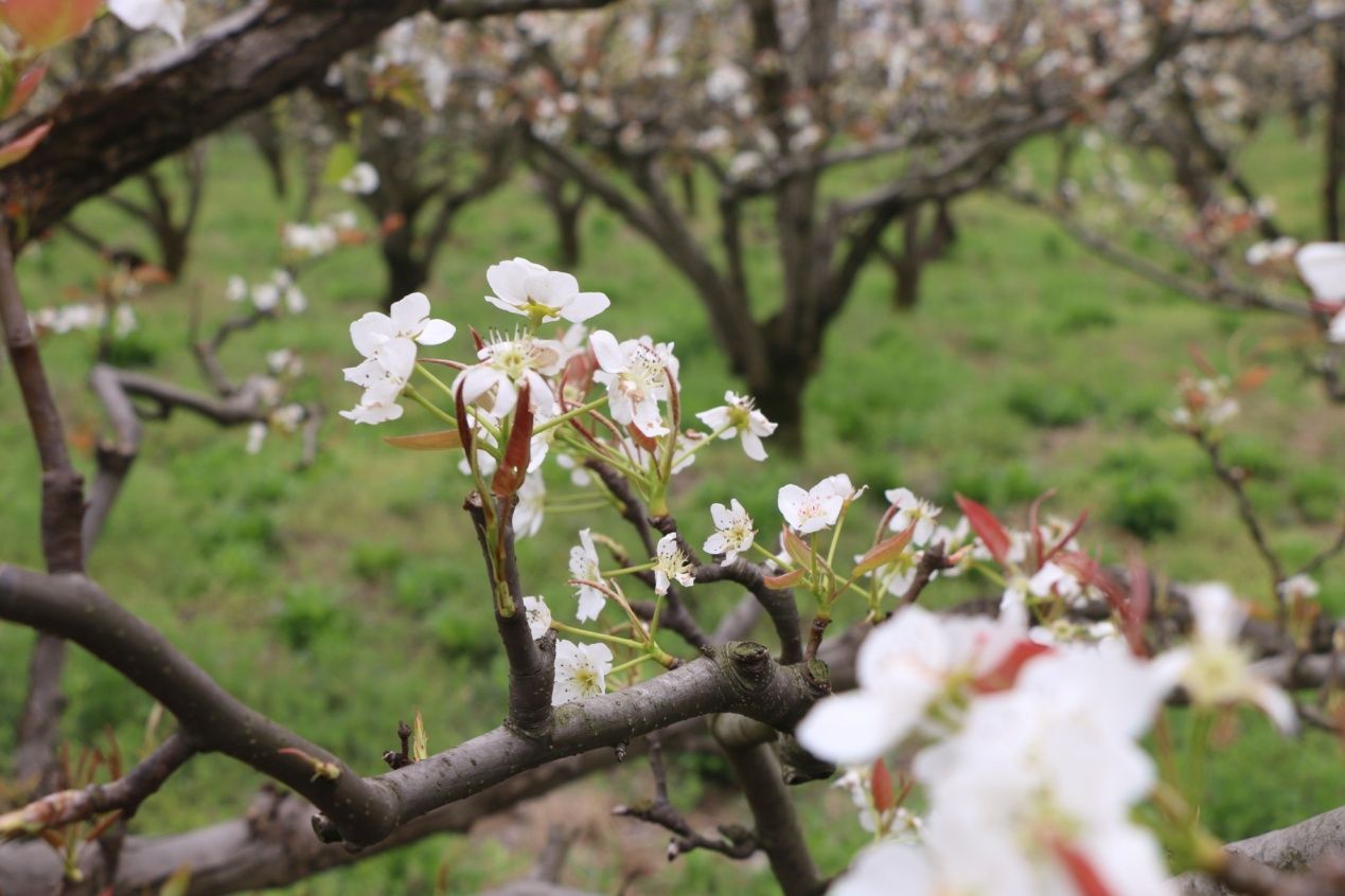 樹樹梨花如漫天飛雪,花團錦簇,花深似海。置身其中,花香擁抱,讓人心曠神怡,悠得自然。大家紛紛用手中的相機拍照留戀,記錄下美麗的瞬間,盡情享受著滿園春色。