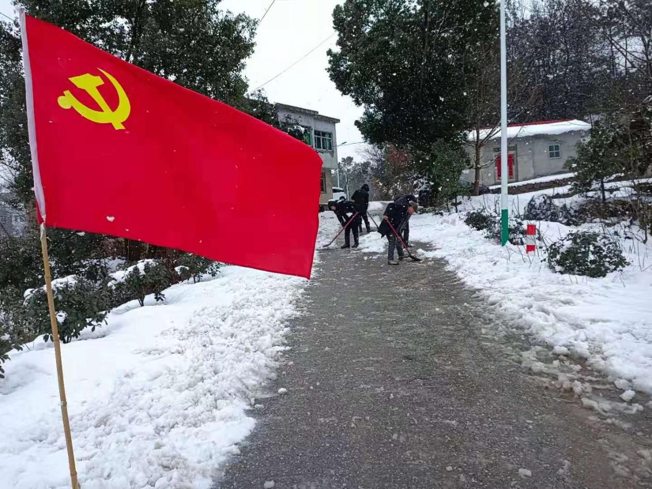 楊橋鎮鮑沖湖村:黨旗飄揚 破冰除雪保暢通