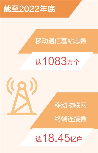 移動物聯網連接數快速增長,“物”連接快速超過“人”連接。統計顯示,截至2022年底,我國移動網絡的終端連接總數已達35.28億戶,其中代表“物”連接數的移動物聯網終端用戶數較移動電話用戶數高1.61億戶,占移動網終端連接數的比重達52.3%。